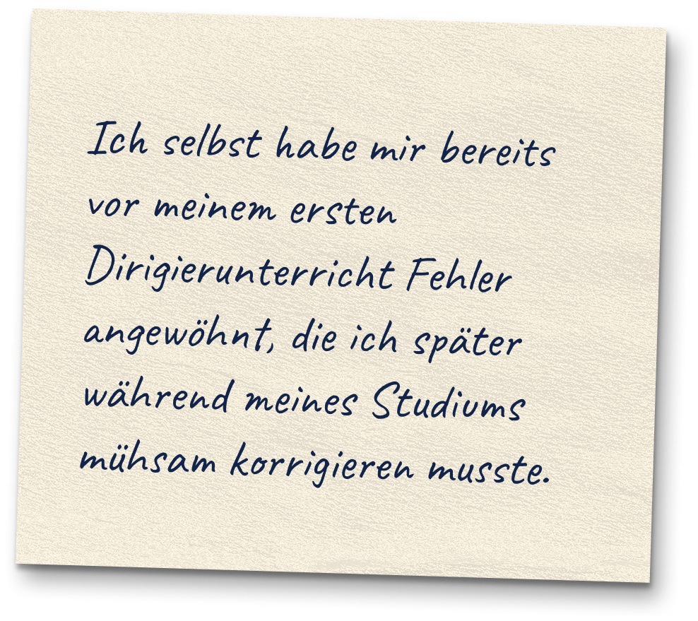 „Ich habe zwar viel Erfahrung mit dem Musizieren, weiß aber nicht, wie ich meine musikalischen Vorstellungen mit dem Dirigieren anzeigen kann.“